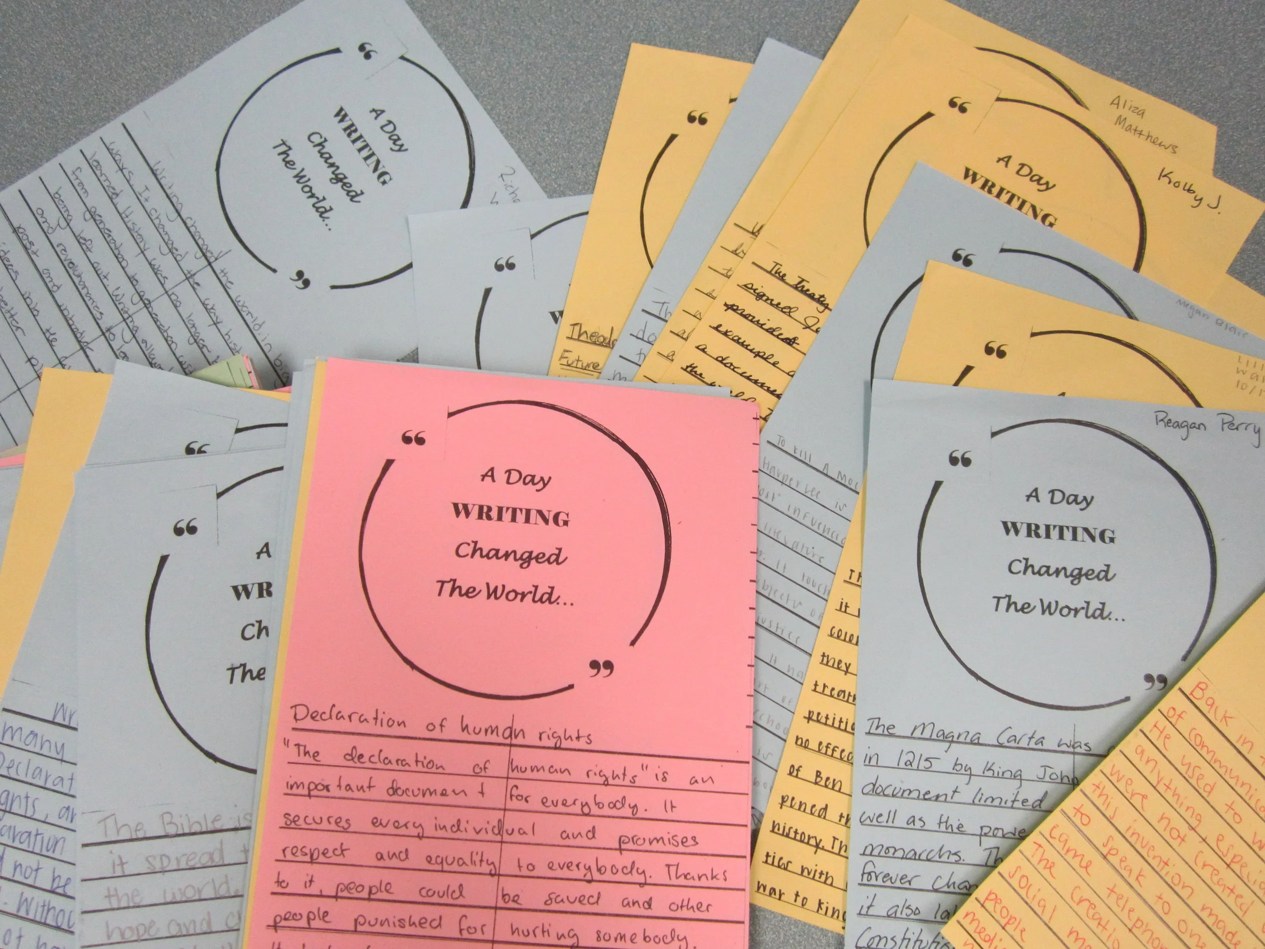 The Declaration of Independence, Romeo and Juliet, letters from home—each made “A Day Writing Changed the World.” These are just a few of the responses Parrott Academy students came up with when asked to describe one piece of writing that had a transformational effect. Along with schools across America, APA middle and high school students celebrated National Day on Writing on Friday October 19th.