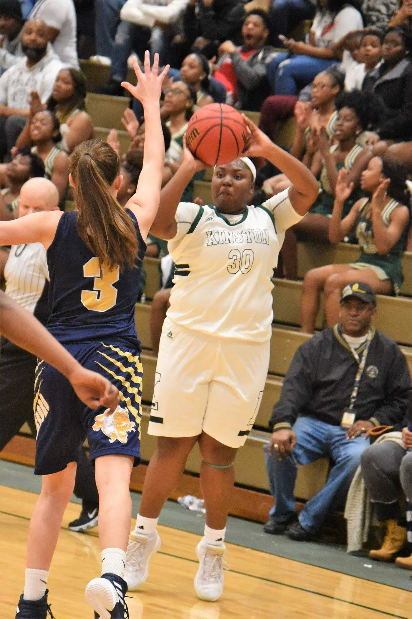 Goldsboro took its first lead since early in the first quarter on a McKayla Roberts basket with 4:55 to play to go up 42-40. The basket triggered a 15-2 run Kinston wouldn’t recover from.