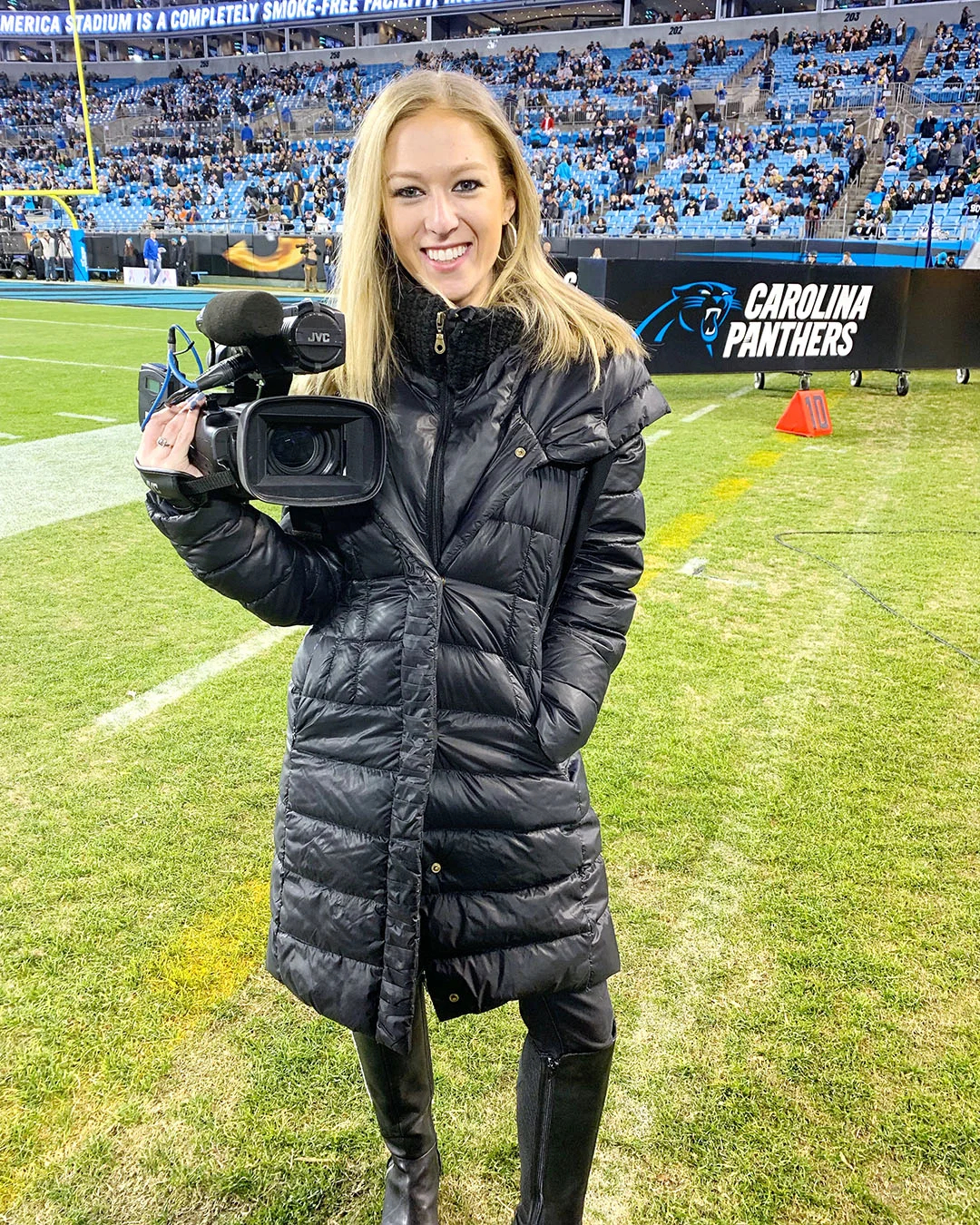 Ariel Epstein poses for a photo before a Carolina Panthers game.
