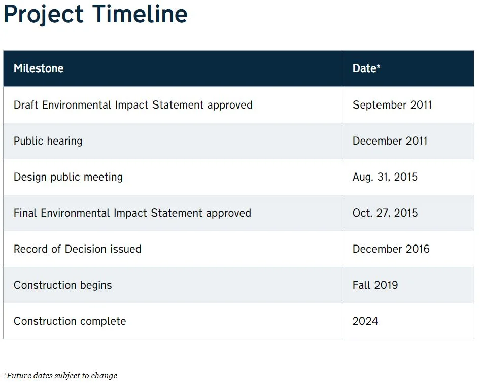 The bypass will consist of 15 bridges, use about 5.8 million cubic yards of borrow material and require about 288,000 tons of asphalt.