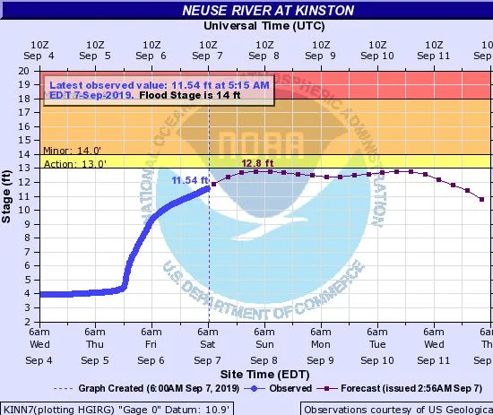 The following are river and creek levels and projected peaks in Lenoir County, Jones County and Greene County. Be sure to check the source below for the latest information.