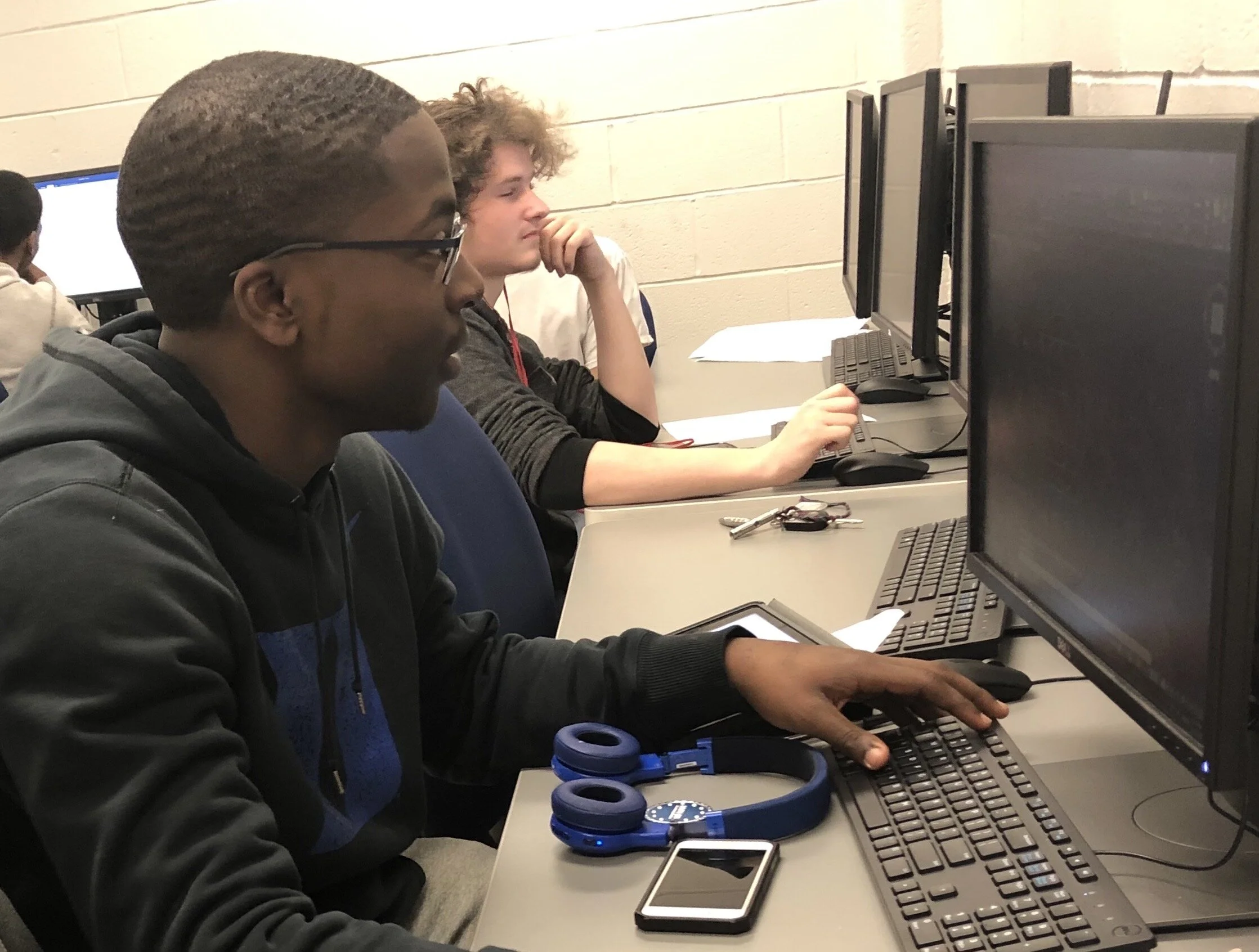 Tavon Tice of Kinston High School is creating a 2D geometric design that allows him to use many of AutoCAD. Submitted photo.
