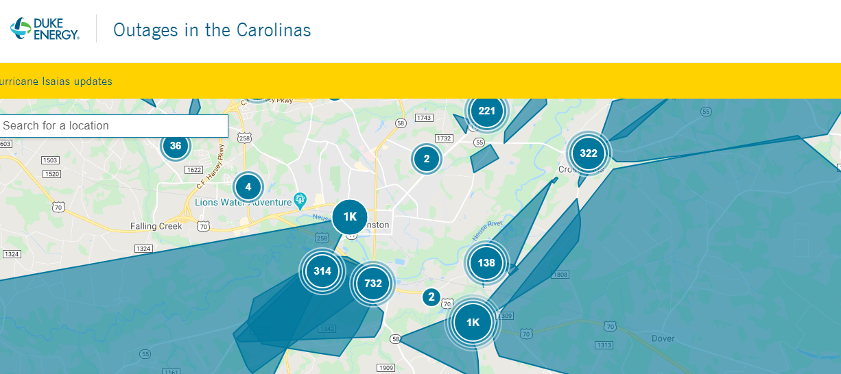 “We’ve monitored outages and system health overnight from the significant impacts of Isaias. We currently have nearly 200,000 customers without power in the Carolinas. In Lenoir County we currently have approximately 4,201 reported customer outages,” said Millie Chalk, Government and Community Relations Manager for Lenoir County in the Duke Energy update for Lenoir County.