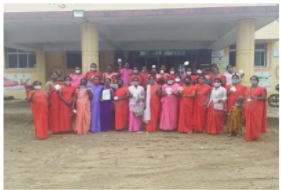 Health care workers in India who received the 3D printed face shields and their handwritten note thanking members of the Rotaract Club of Lenoir County.
