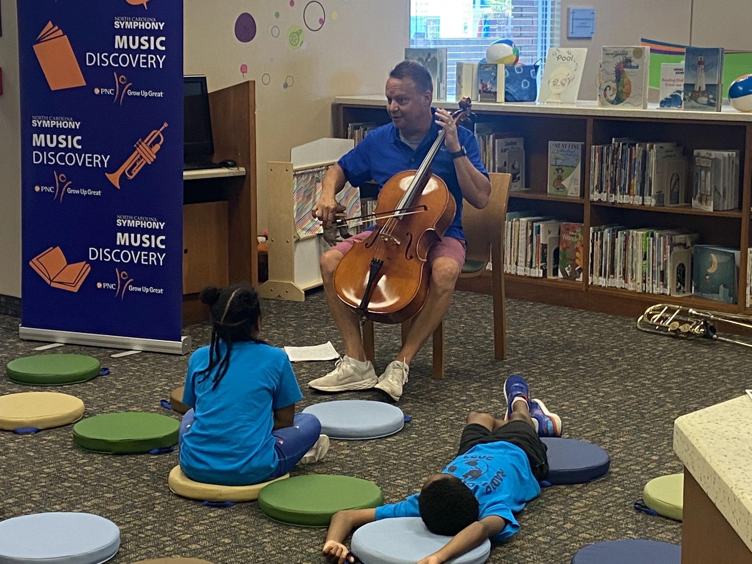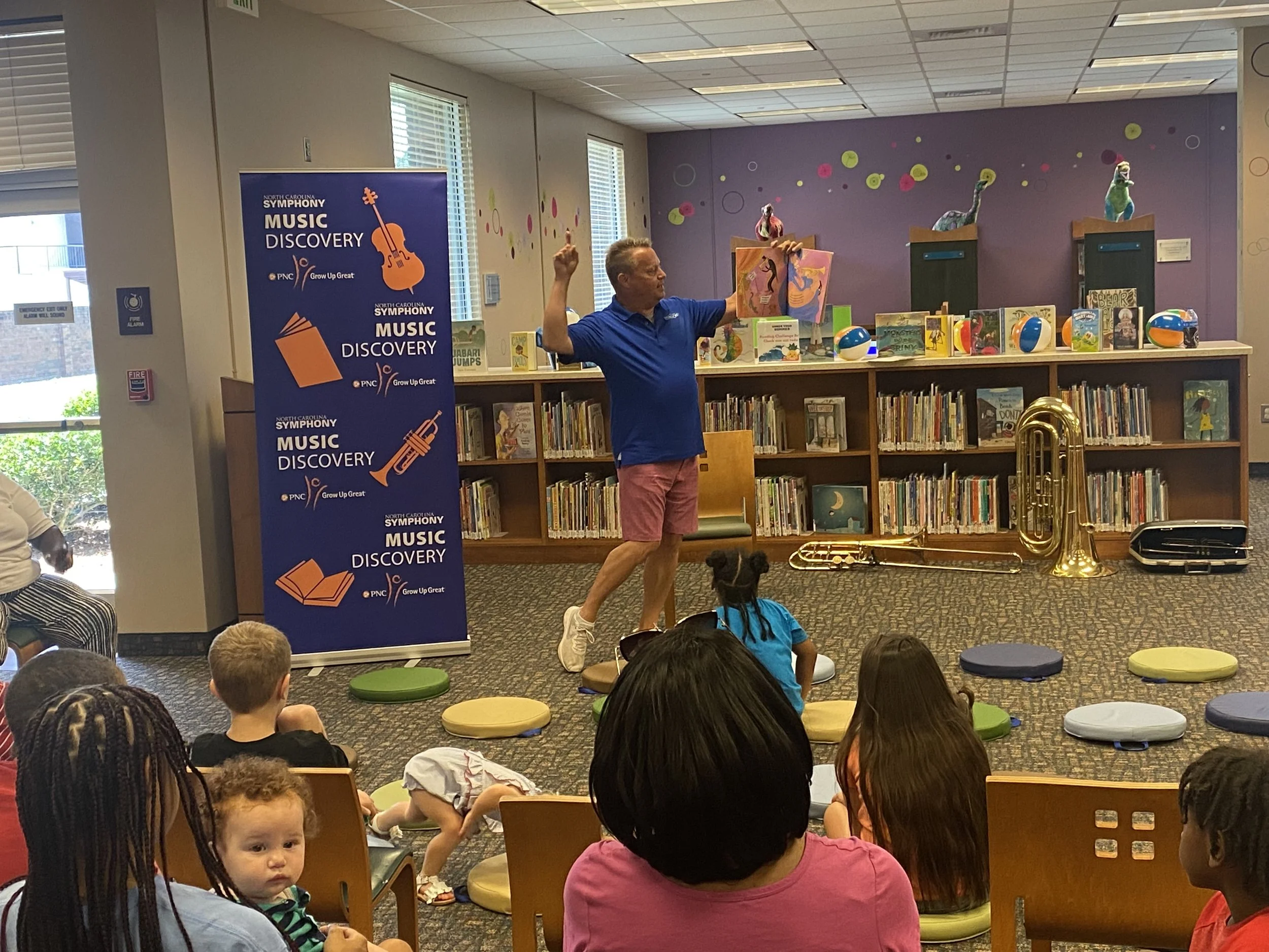 Matt Neff, a bass trombonist with the North Carolina Symphony, performed at the Neuse Regional Library today for Kinston’s youth. Along with the live performance, the audience also learned what goes into making sounds on the bass instruments.
