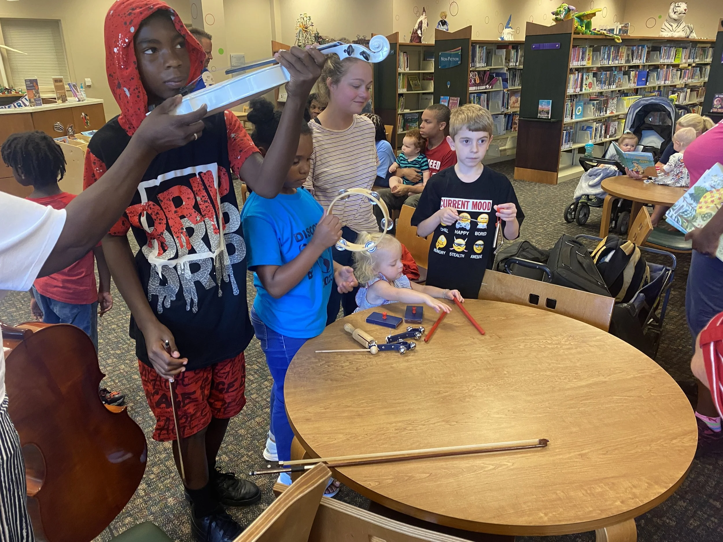 Kids play with instruments: Drew Hedrick/Neuse News