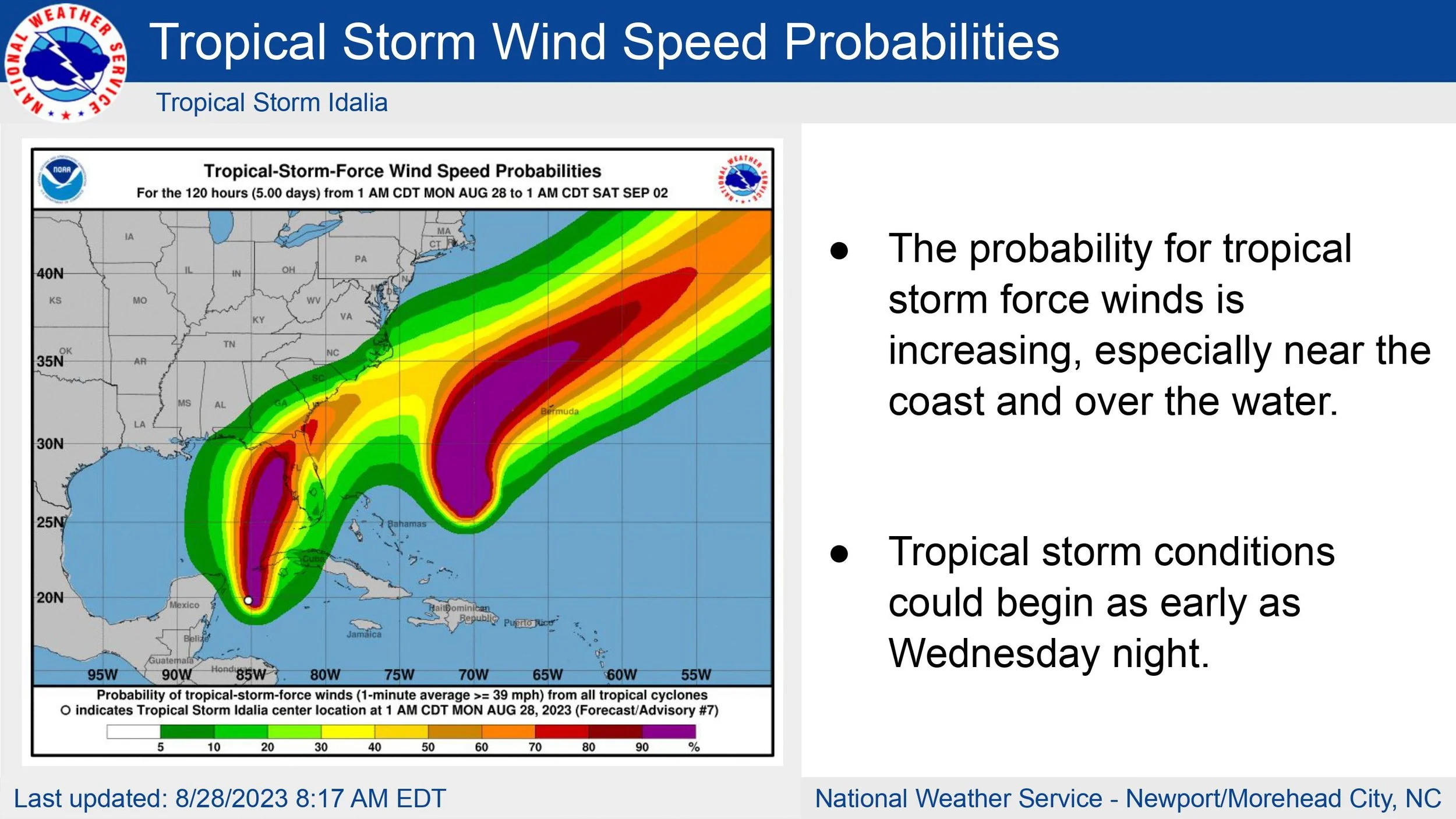 NWS: Impacts from Tropical Storm Idalia on eastern NC increasing