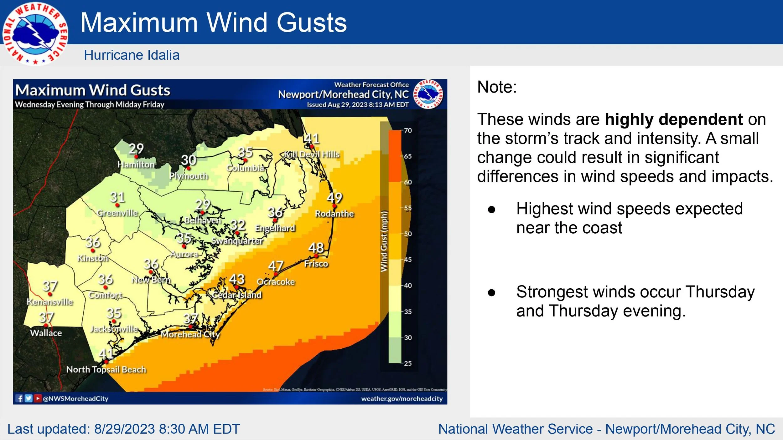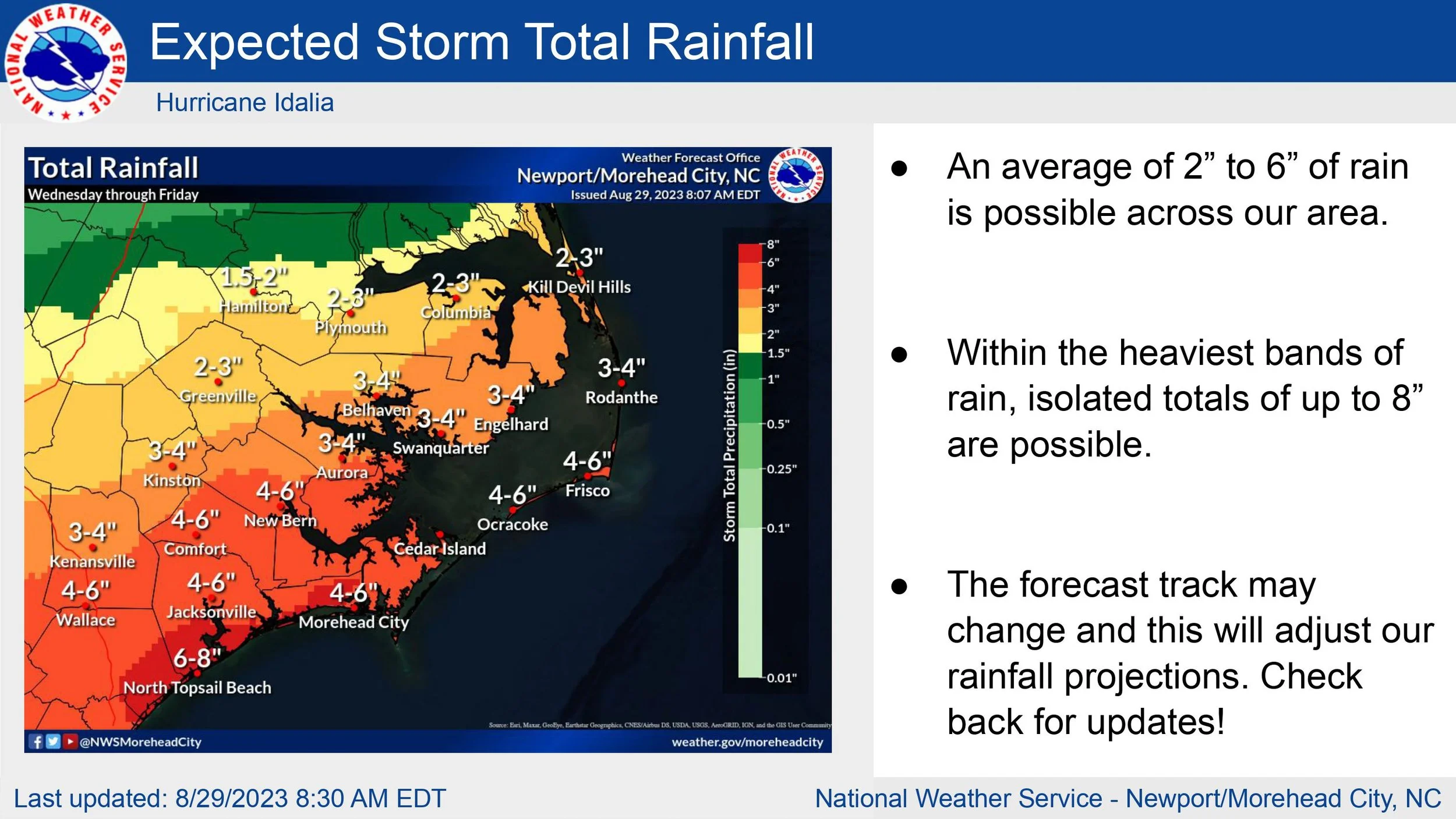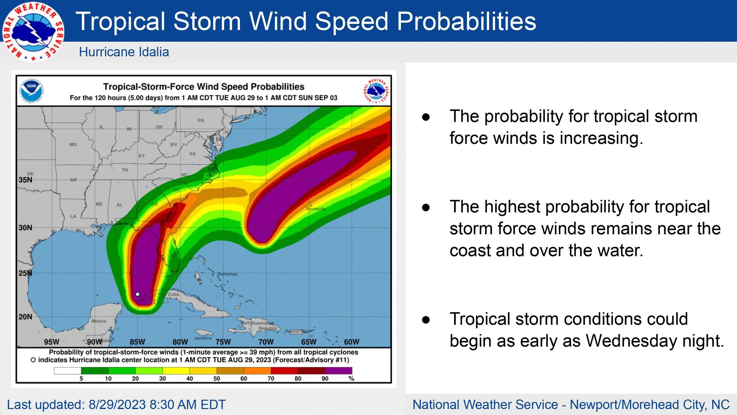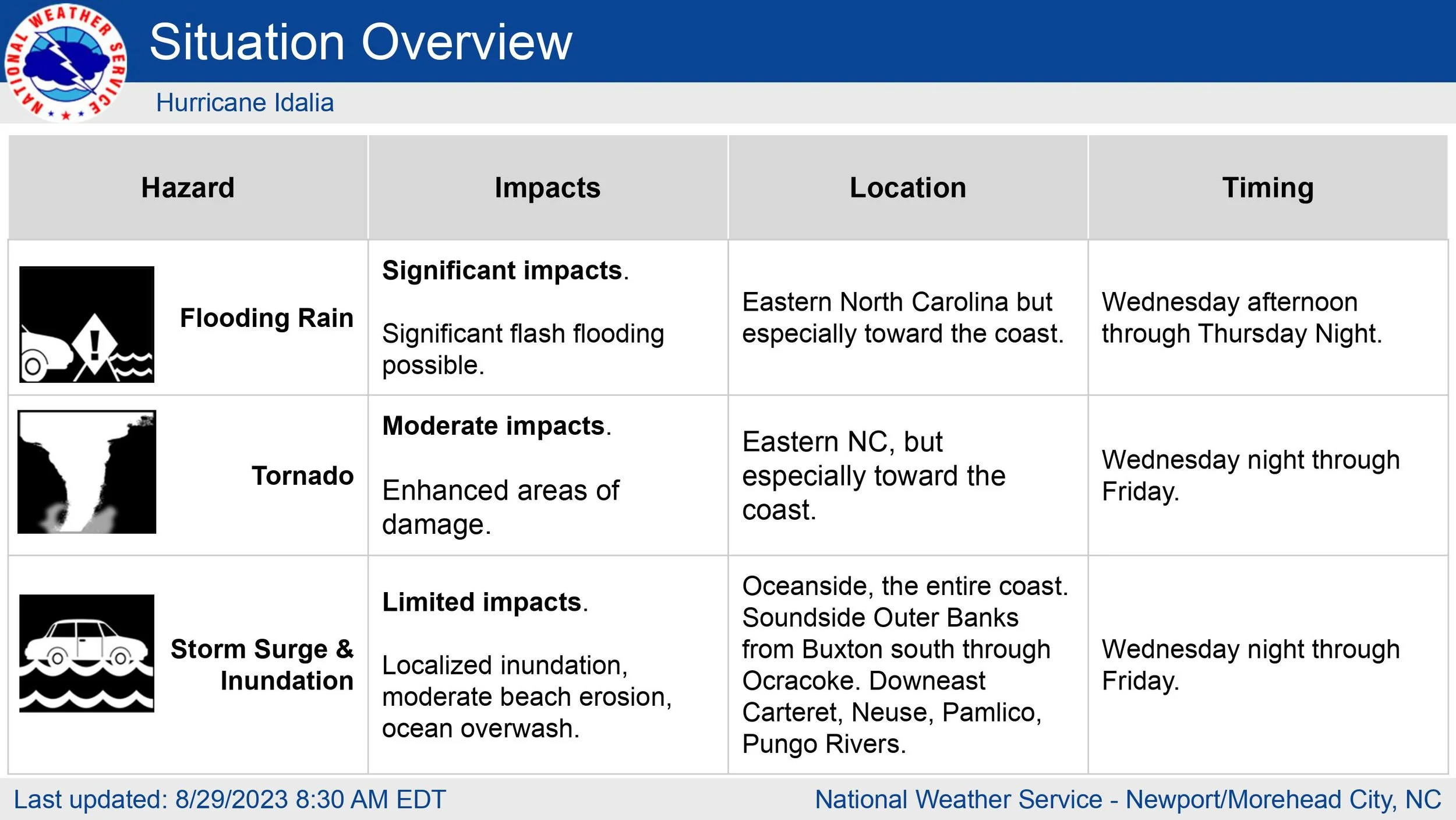 The tornado threat has increased with Idalia otherwise no big changes to the forecast. Continue to monitor for updates over the next few days.