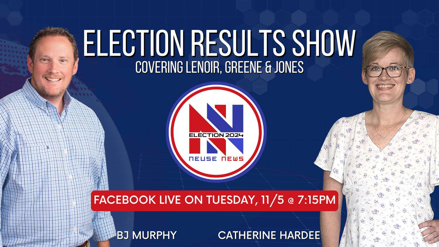 Join Neuse News Publisher BJ Murphy, Political Correspondent Catherine Hardee, and our team as we cover the key races in Lenoir, Greene, and Jones Counties, along with statewide and national updates. Don’t miss Senator Perry’s unique perspective as he breaks down the results and what they mean for North Carolina’s future!