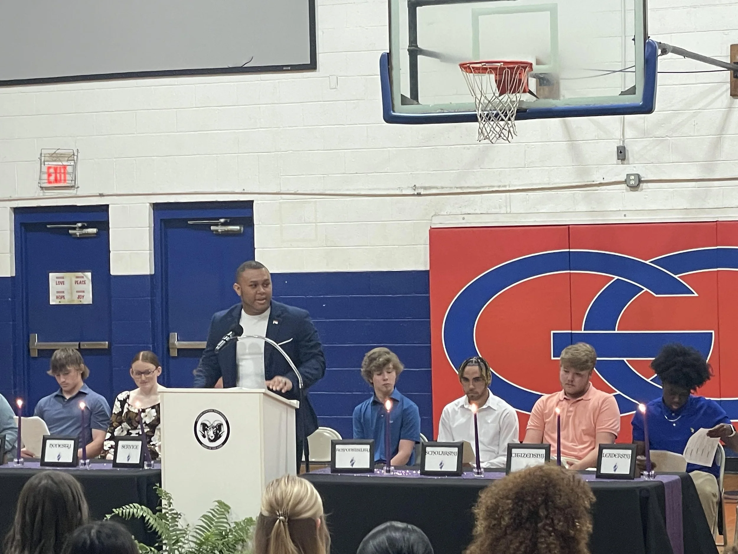 GCHS Senior Cameron Lane speaks at the GCHS NTHS induction Ceremony.