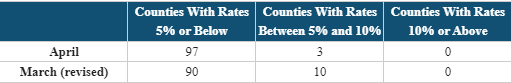 Raleigh, N.C. — Unemployment rates (not seasonally adjusted) decreased in all 100 of North Carolina’s counties in April 2024. Scotland County had the highest unemployment rate at 5.8 percent while Greene, Buncombe, and Ashe Counties each had the lowest at 2.6 percent. All fifteen of the state’s metro areas experienced rate decreases. Among the metro areas, Rocky Mount had the highest rate at 4.5 percent while Asheville had the lowest at 2.7 percent. The not seasonally adjusted statewide rate was 3.3 percent.