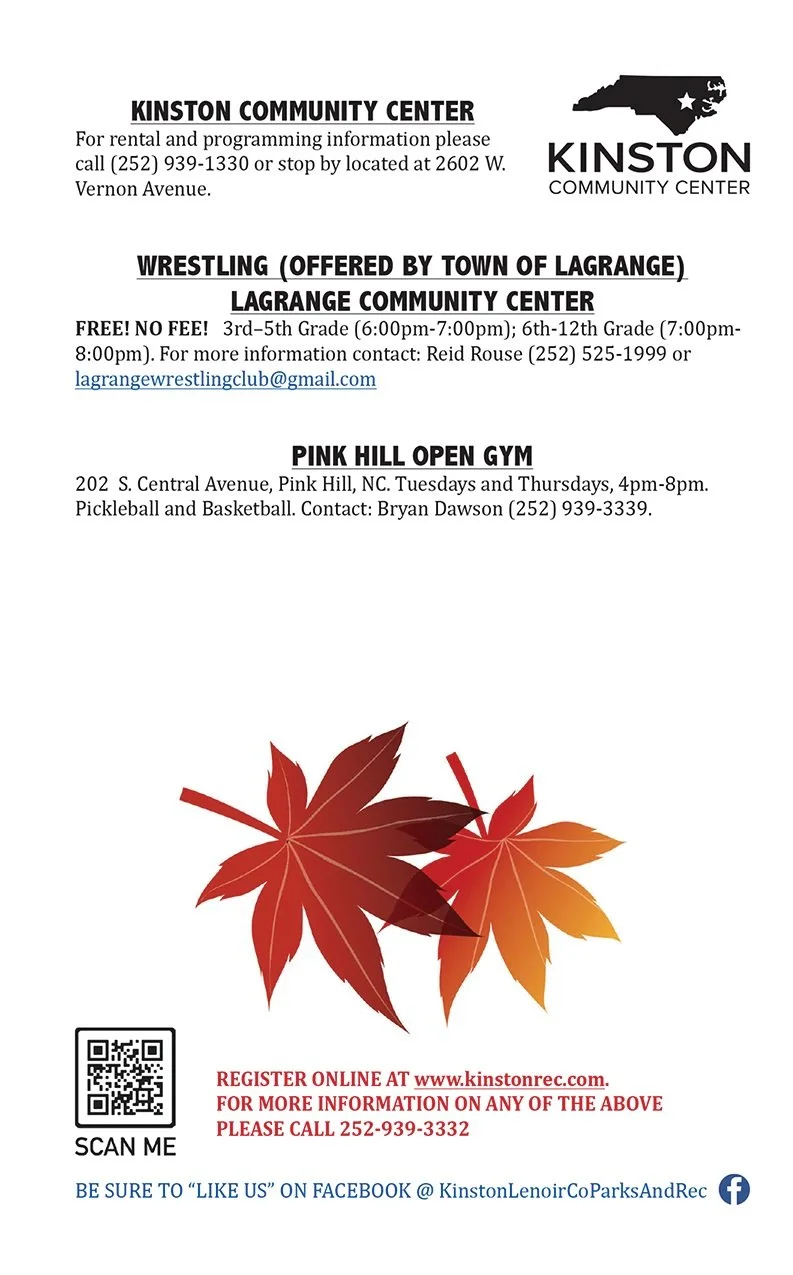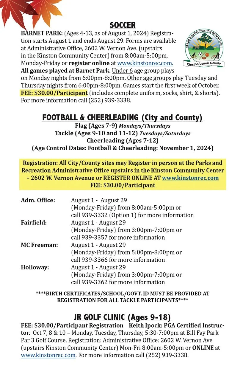 Kinston/Lenoir County Parks & Recreation Fall Program
