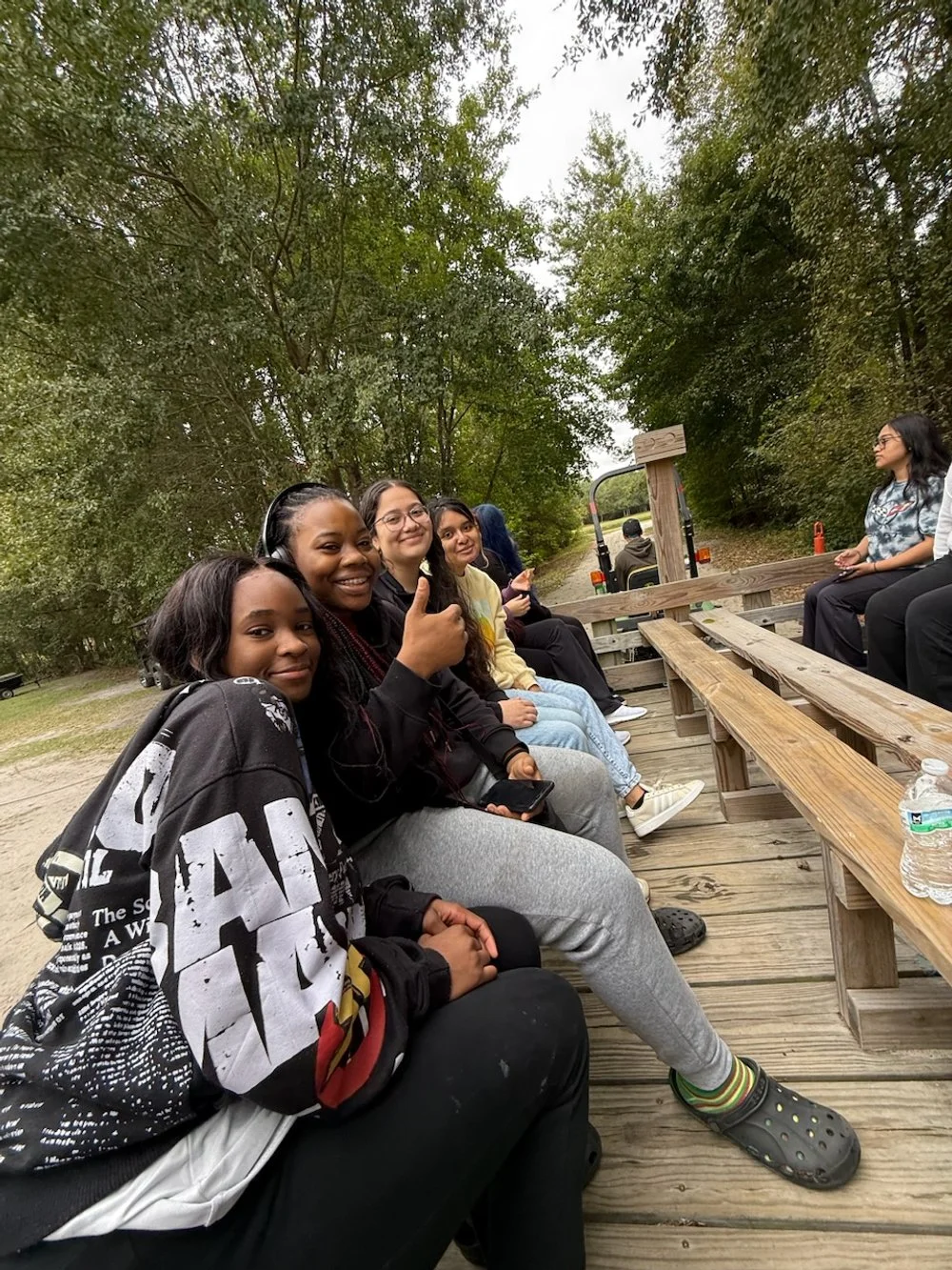 Jy’Nezia Condery, Mia Evans, Monica Acevedo, and Abigail Carrizo exploring the outdoors at The Refuge in Greene County with the GEC Trailblazers Club.