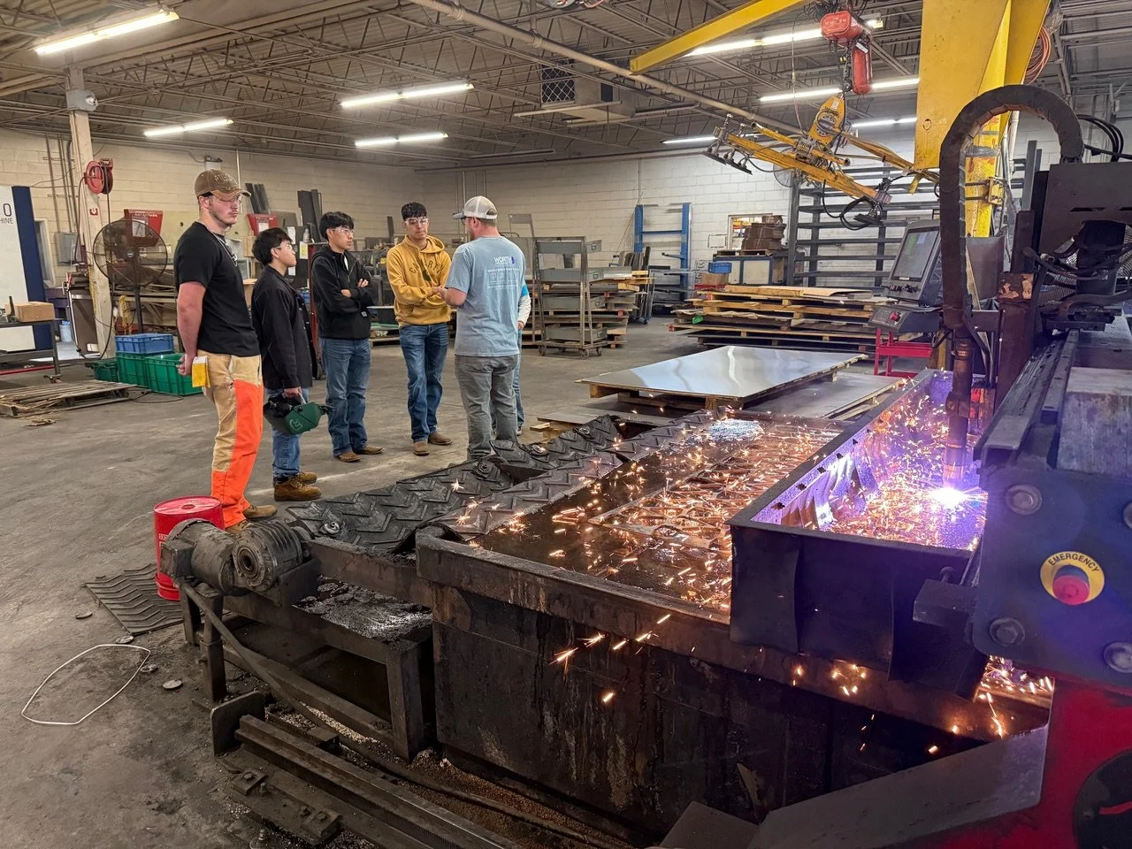Ethan Snyder, Julian Maya, Angel Lopez-Gamas, and Daniel Cabral-Gonzalez at Worth Products in Snow Hill are being educated on careers in welding and machining.