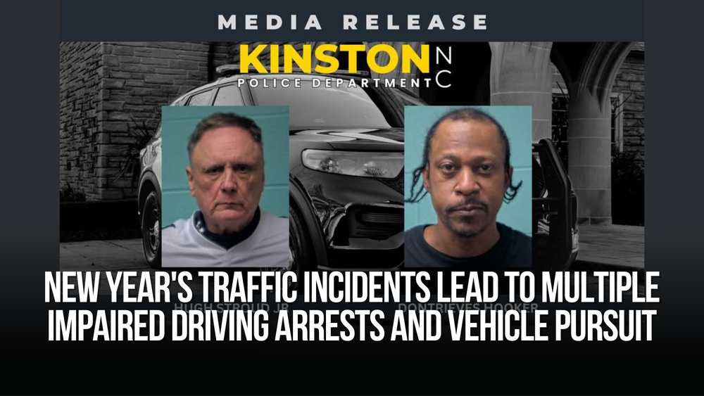 Kinston Police Officers made several arrests over the New Year’s, with a focus on impaired driving and a vehicle pursuit.