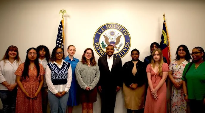 [Congressman Don Davis with the 2025 Congressional Art Competition ceremony attendees]