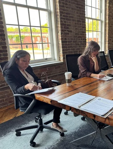 [Judges Dara Silver and Emily Figueras meet to discuss the 2025 Congressional Art Competition winners for North Carolina's 1st Congressional District.]