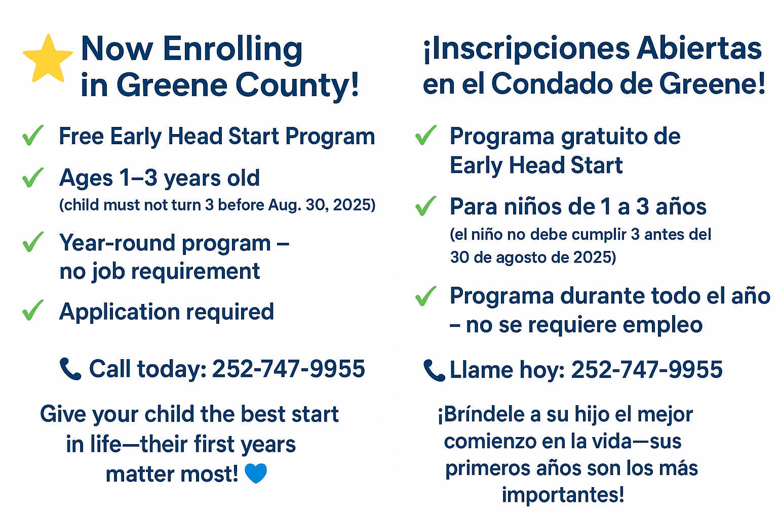 Public Notice: Greene County Parents, Early Head Start slots are now available for children ages 1–3 years old