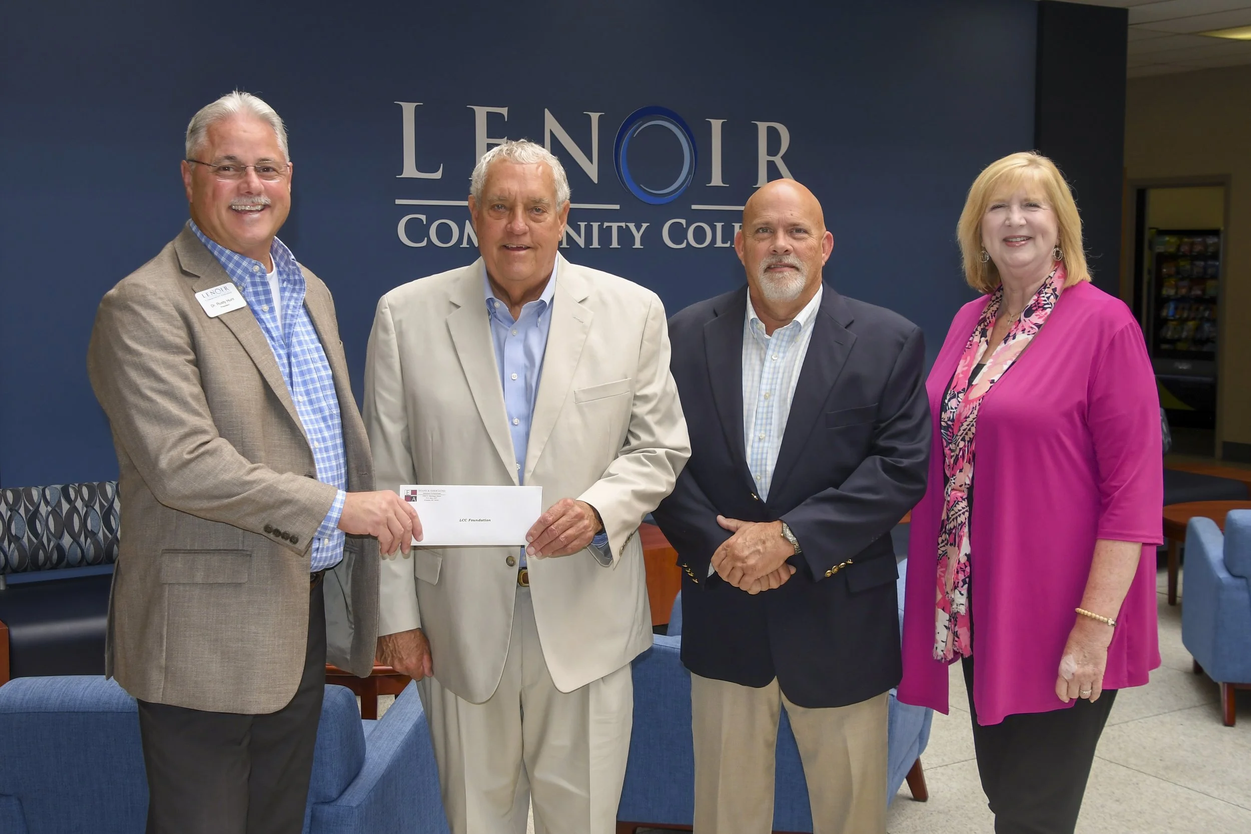 Pictured left to right are LCC President Dr. Rusty Hunt, Evans & Associates President Rod Evans, Jr., Evans & Associates Vice President Jeff Thomas, and LCC Foundation Executive Director Jeanne Kennedy.
