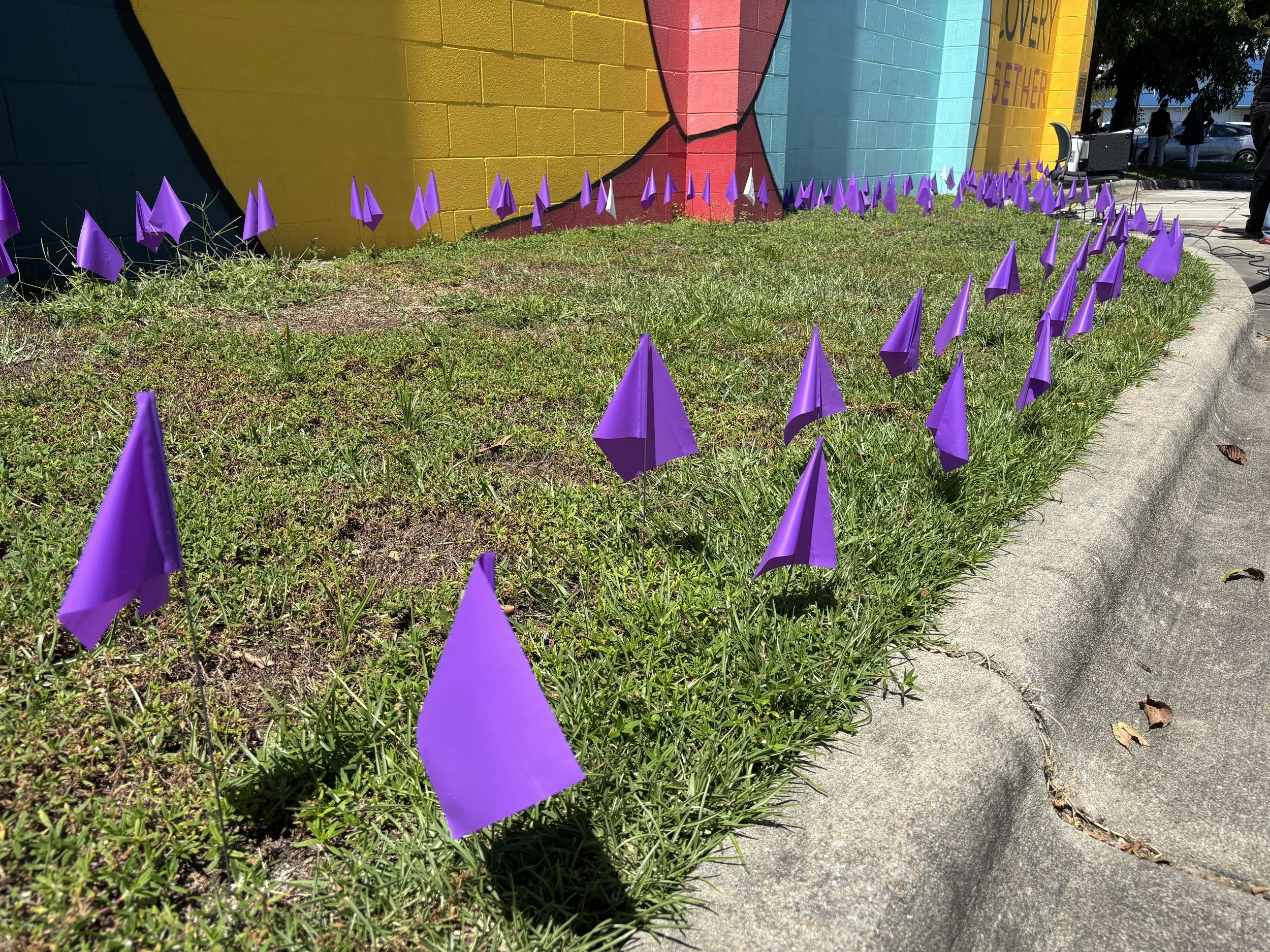 “Substance use affects everybody. It is not about race, gender, culture or income. It touches us all,” Heath said. Purple flags were placed to represent community members lost to overdose, and white flags bearing names, prayers and personal messages were added by participants.