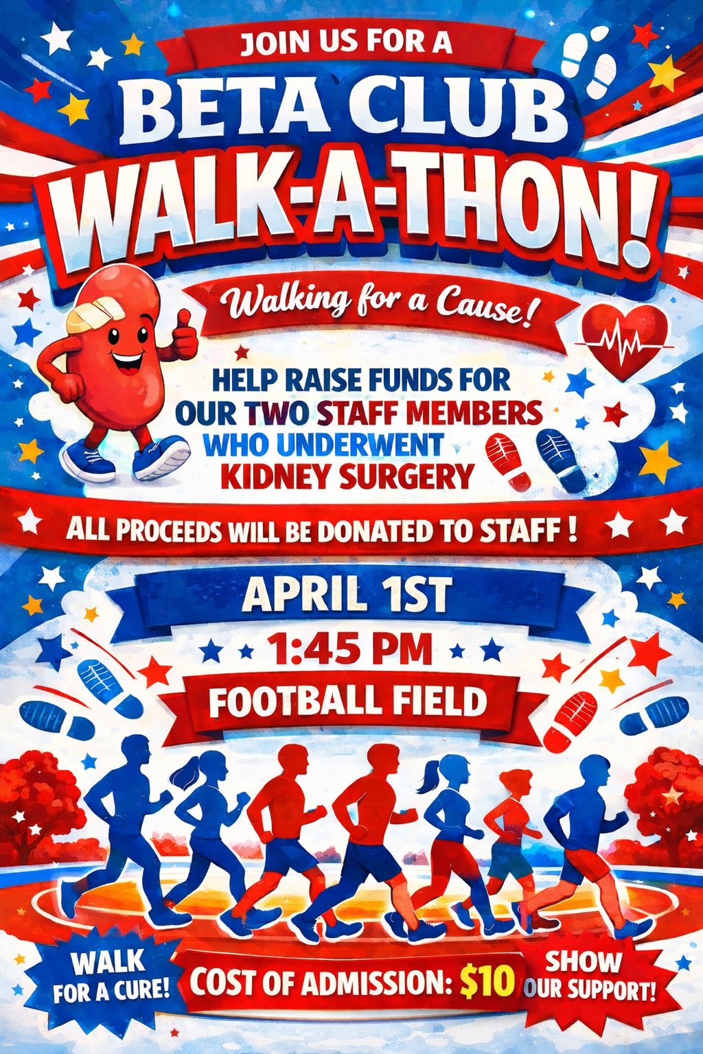 In light of this, Jr BETA Club officers and Sponsors Dakaria Carlton, Allison Crowder, and Matthew Duval decided to hold a walk-a-thon to help raise money for both staff members. For $10, students could spend the end of their school day walking for Mrs. Tatum and Dr. Moore. “We wanted to find a way to help Dr. Moore and Mrs. Tatum, and through creative conversation, we decided to try a walk-a-thon.” Mrs. Carlton shared. Mrs. Crowder added,” The fact that it all fell in the same week of our club’s 40th Anniversary just seemed perfect that we were serving 2 of our own.